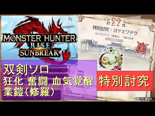 (Switch)モンスターハンターライズ サンブレイク ソロ討伐!! 特別討究 ヨツミワドウ VS 双剣のカナン(狂化) by KANAN (MONSTER HUNTER RISE SUNBREAK