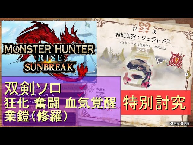 (Switch)モンスターハンターライズ サンブレイク ソロ討伐!! 特別討究 ジュラトドス VS 双剣のカナン(狂化) by KANAN (MONSTER HUNTER RISE SUNBREAK