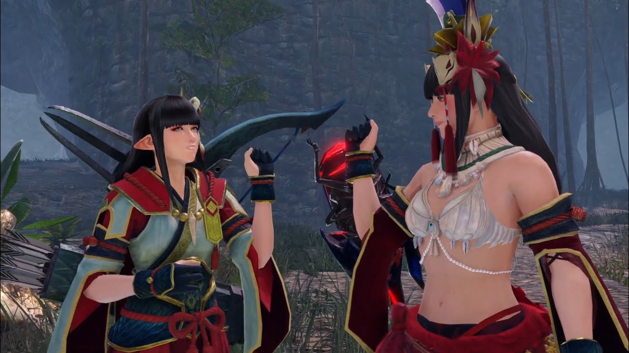 【MHR:S】🦊🦉🪲🐶🐶#巫女(風)#水着#重ね着・で#リオレイア希少種🦅🦂(#盟勇#ヒノエ🐶青目&#ミノト🐶黄目)#操虫棍#弓#ランス(#モンスターハンターライズサンブレイク)